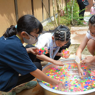 体験活動は楽しく!がモットーです。この日は夏休みの定番!スイカ割りをしました。